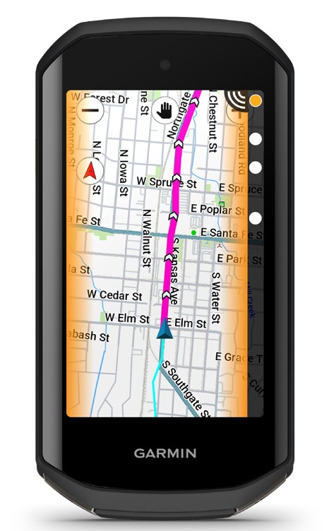 Při propojení s kompatibilním smartphonem a aplikací Garmin Connect™ poskytuje cyklopočítač za jízdy upozornění na nebezpečí na silnici, zprávy od ostatních cyklistů, aktuální žebříčky a další informace.